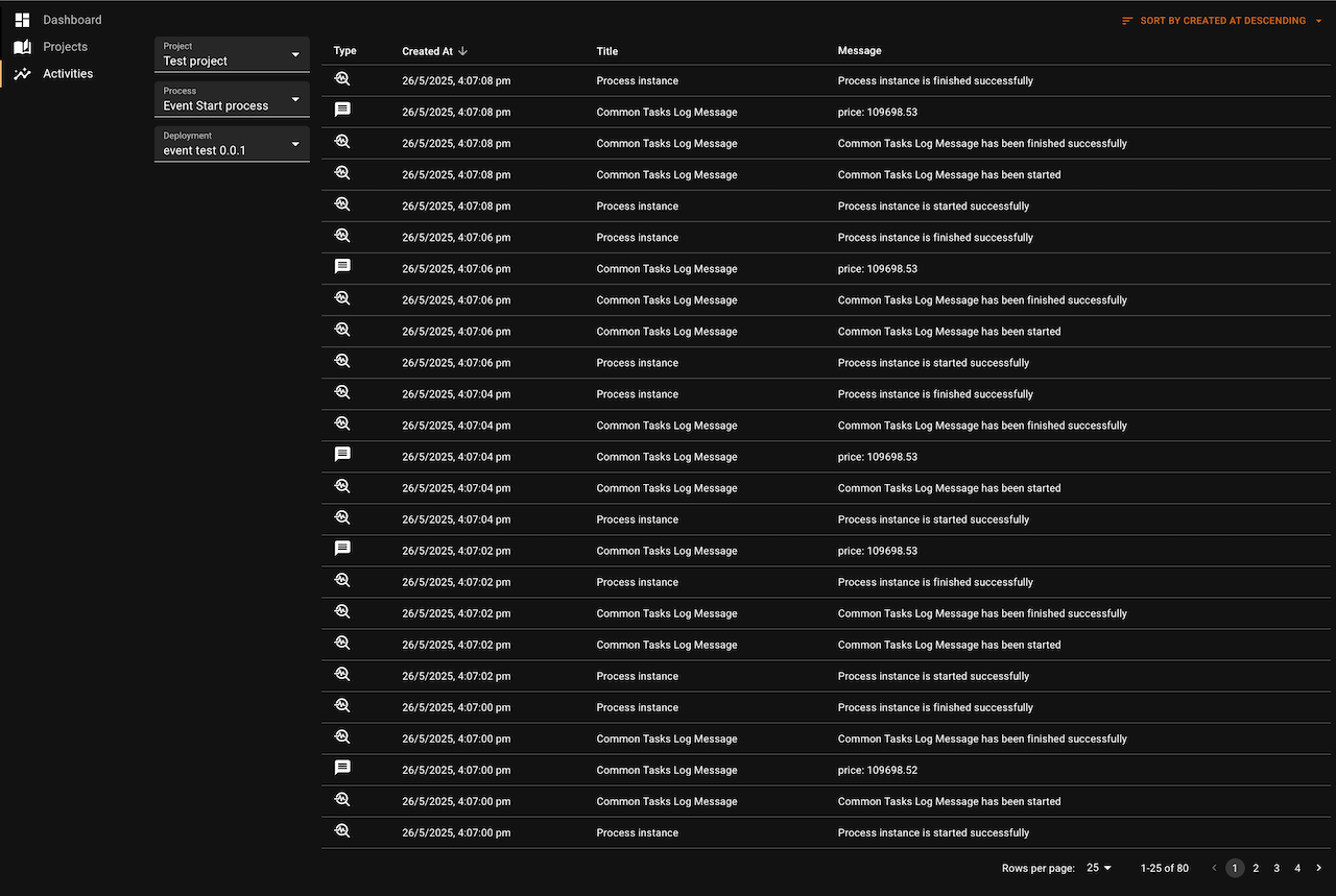 Note: Invalid filter values will not produce an error, but your process will silently stop receiving events.
