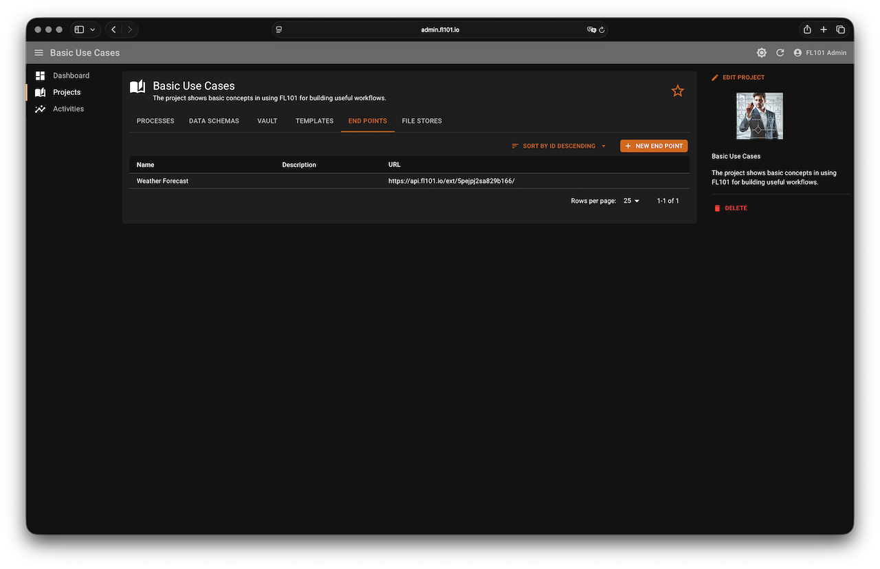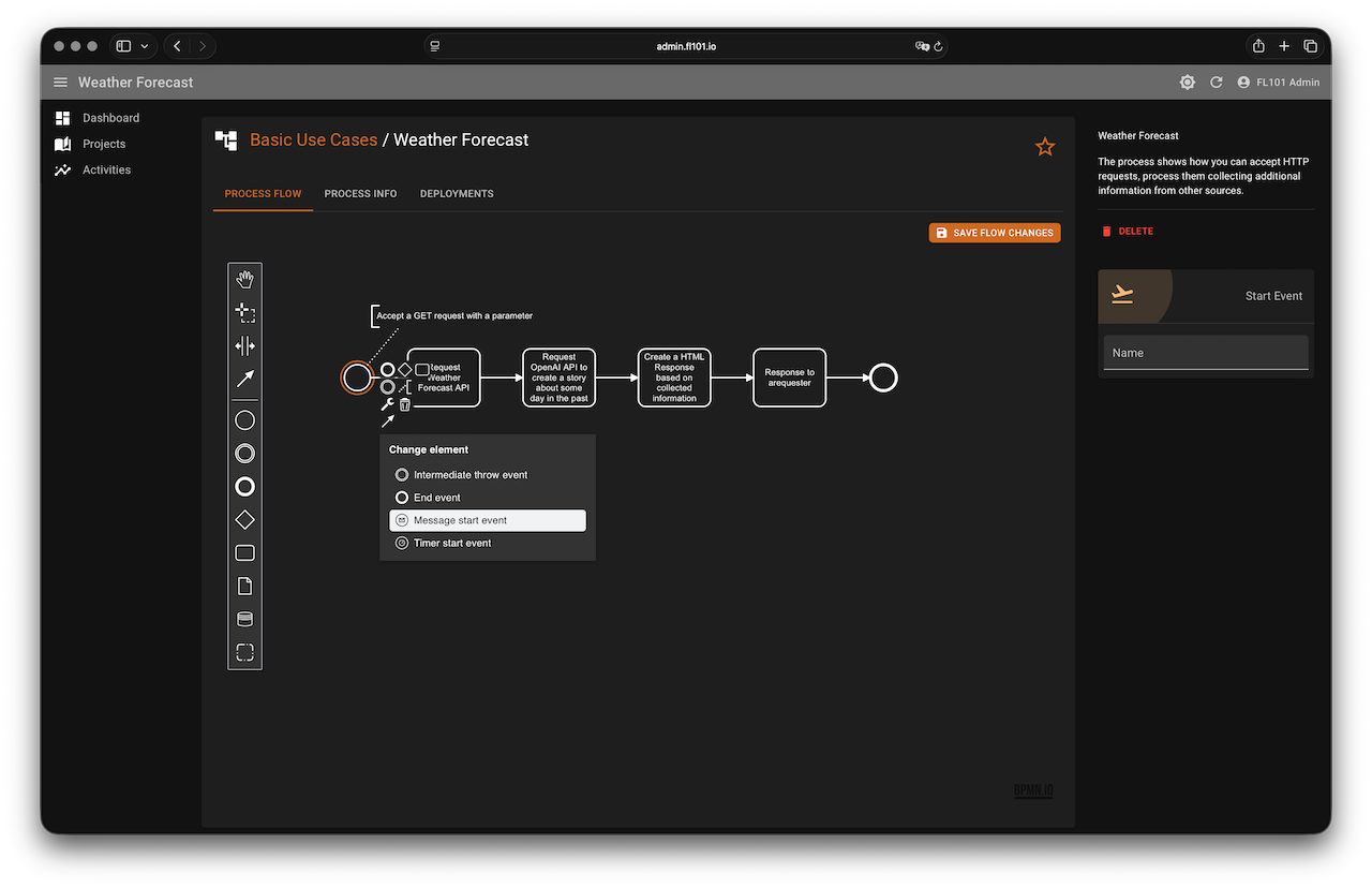 Also create an End Point named “Weather Forecast” (or any name you prefer). This endpoint will be used by the Message Start Event.